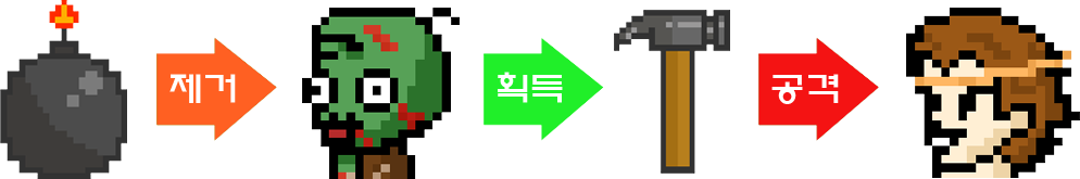 위 그림처럼, 폭탄을 설치해서 좀비를 제거합니다.